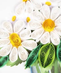 Nothing beats fresh picked handcrafted daisies from the garden. You will make your friends day when you gift the this beautiful quilled daisy floral arrangement.