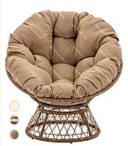 The generously padded, oversized cushion provides exceptional comfort, inviting you to sink in and relax. The swiv